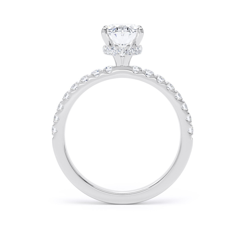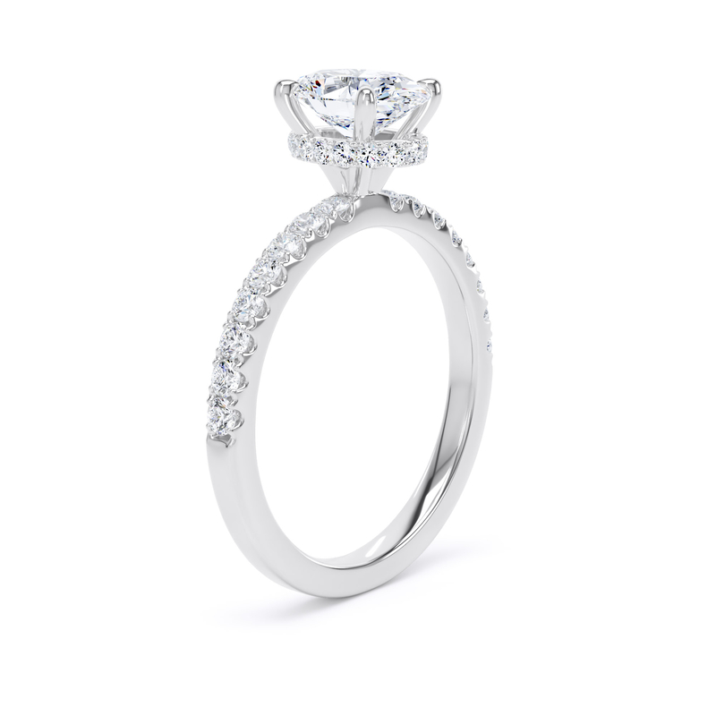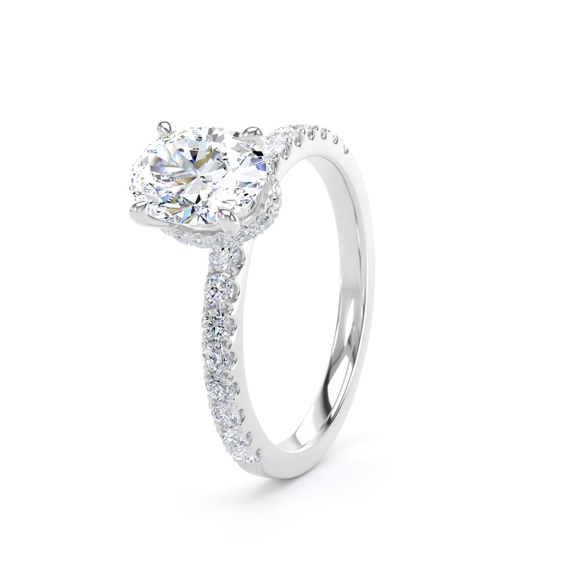 For an added layer of intricate sparkle, a shoulder set ring features a band gracefully adorned with smaller diamonds, leading the eye towards the magnificent centre stone. This elegant design choice enhances the overall brilliance of the ring, creating a continuous and captivating flow of light. Choose a shoulder set design for a timeless look that combines classic sophistication with an extra touch of glamou