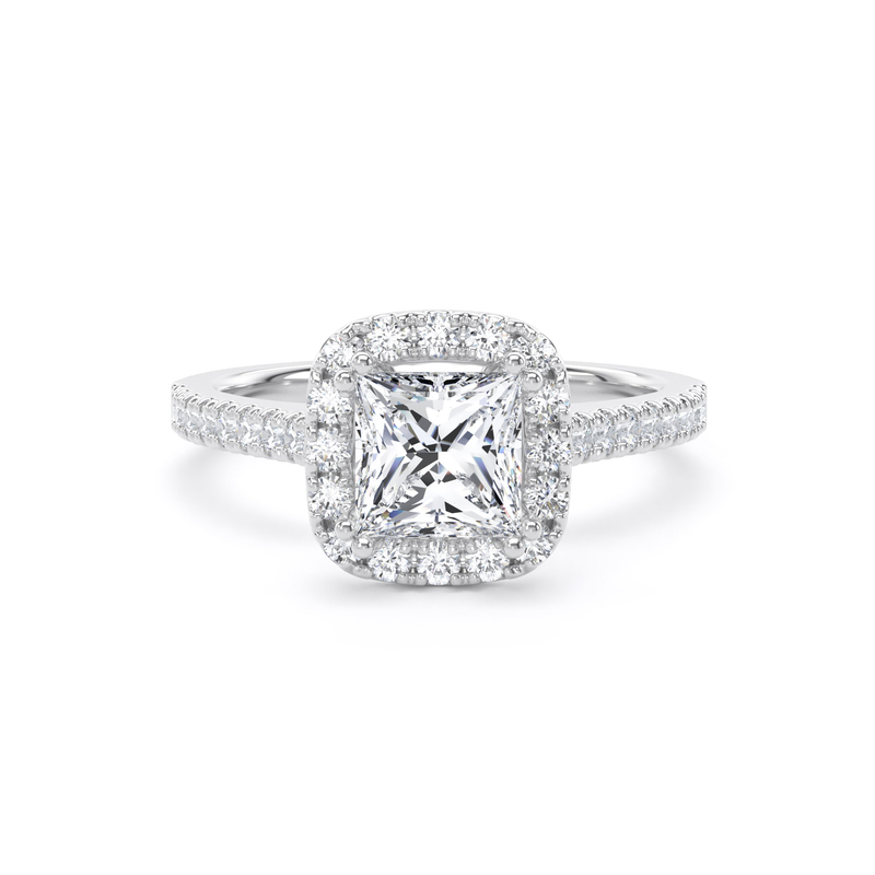 Embodying modern sophistication, the princess cut diamond is celebrated for its sharp, contemporary square shape and exceptional fire. Its brilliant, angular facets are masterfully cut to create an intense sparkle, offering a stunning alternative to the classic round cut. Choose a princess cut for a ring that delivers bold, geometric elegance with breathtaking brilliance.