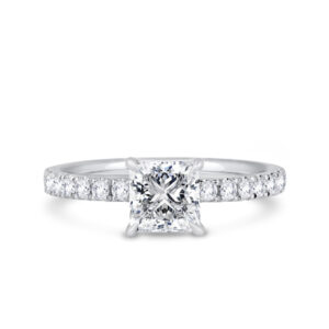 For an added layer of intricate sparkle, a shoulder set ring features a band gracefully adorned with smaller diamonds, leading the eye towards the magnificent centre stone. This elegant design choice enhances the overall brilliance of the ring, creating a continuous and captivating flow of light. Choose a shoulder set design for a timeless look that combines classic sophistication with an extra touch of glamou