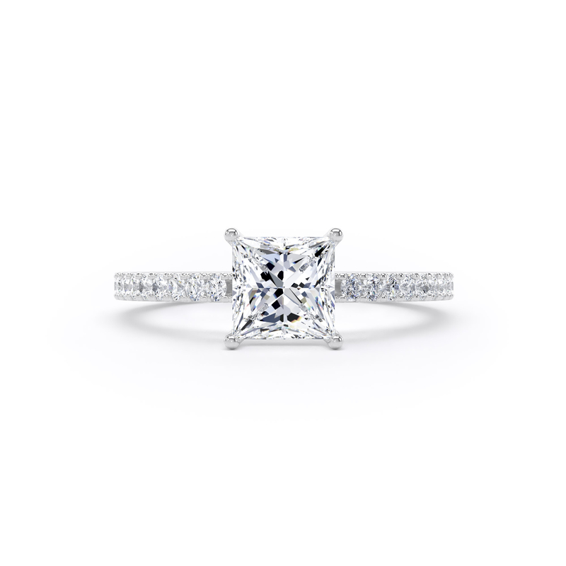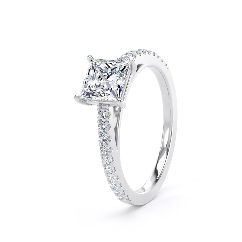 For an added layer of intricate sparkle, a shoulder set ring features a band gracefully adorned with smaller diamonds, leading the eye towards the magnificent centre stone. This elegant design choice enhances the overall brilliance of the ring, creating a continuous and captivating flow of light. Choose a shoulder set design for a timeless look that combines classic sophistication with an extra touch of glamou