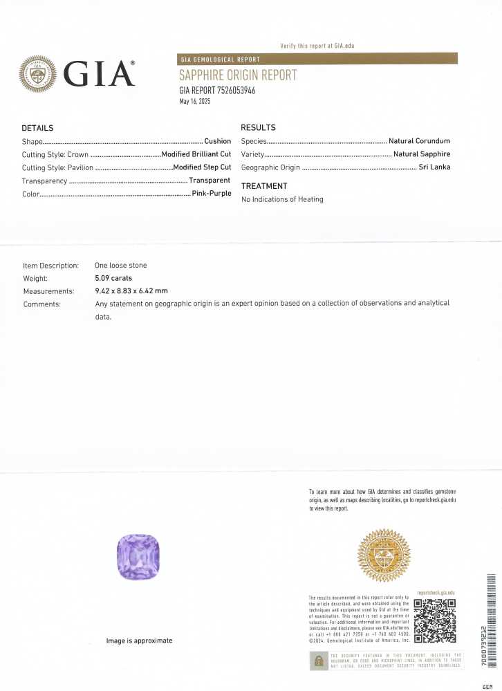 Purple Sapphire – Square (Antique) Cushion 5ct+ 5.09ct/st