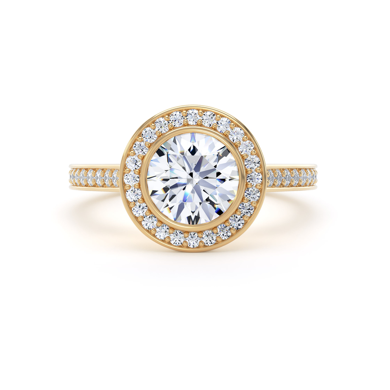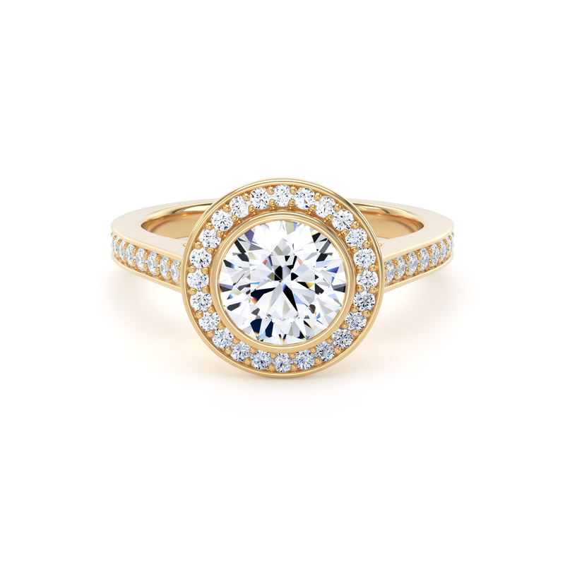 RHG01 Round Cut Halo Engagement Ring in 18ct Yellow Gold