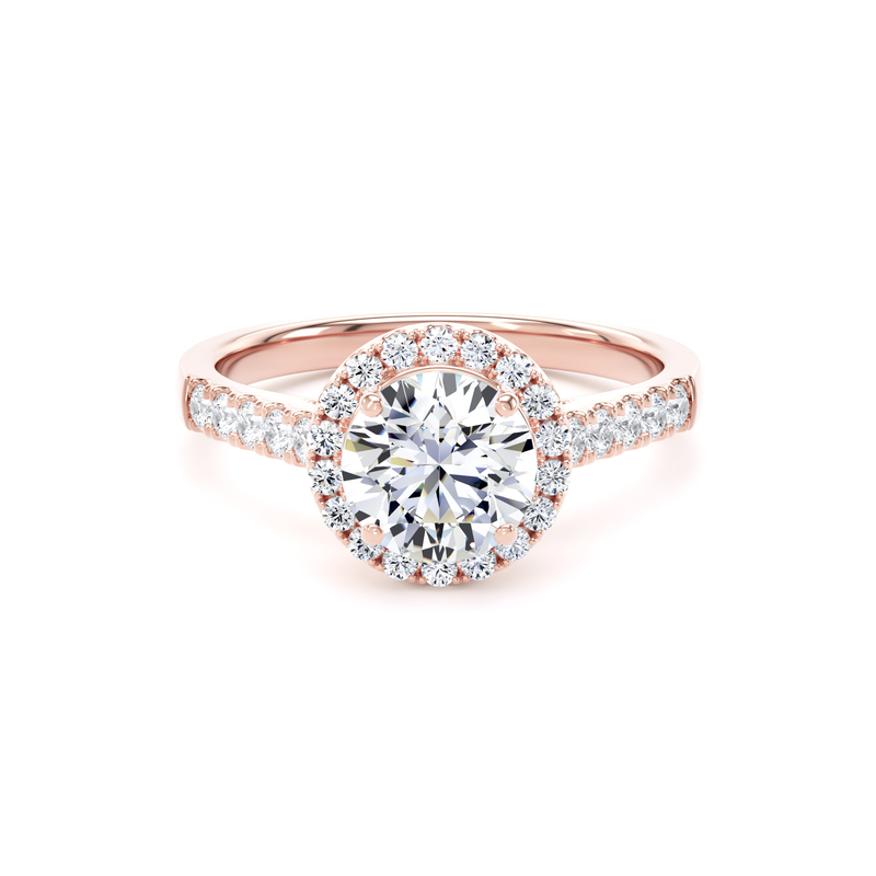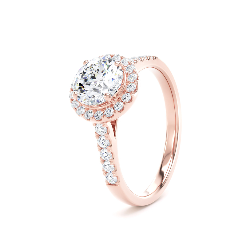 RHS01 Round Cut Halo Engagement Ring in 18ct Rose Gold