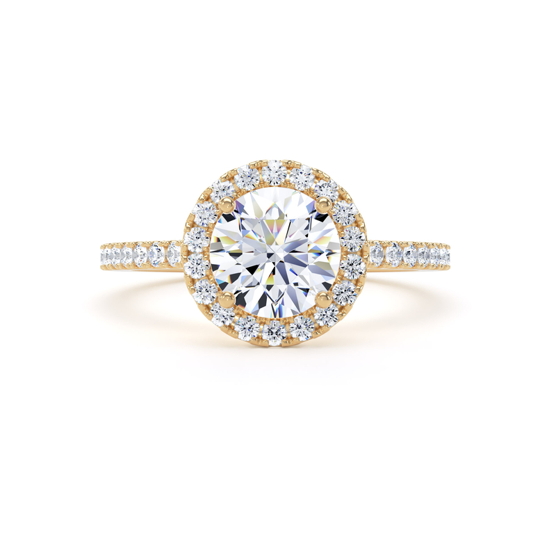 RHW01 Round Cut Halo Engagement Ring in 18ct Yellow Gold
