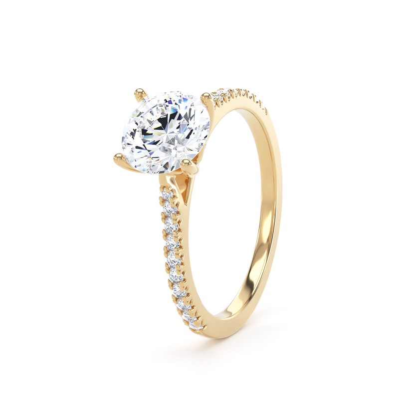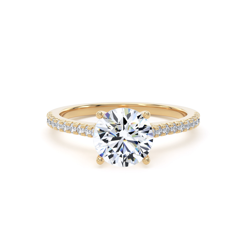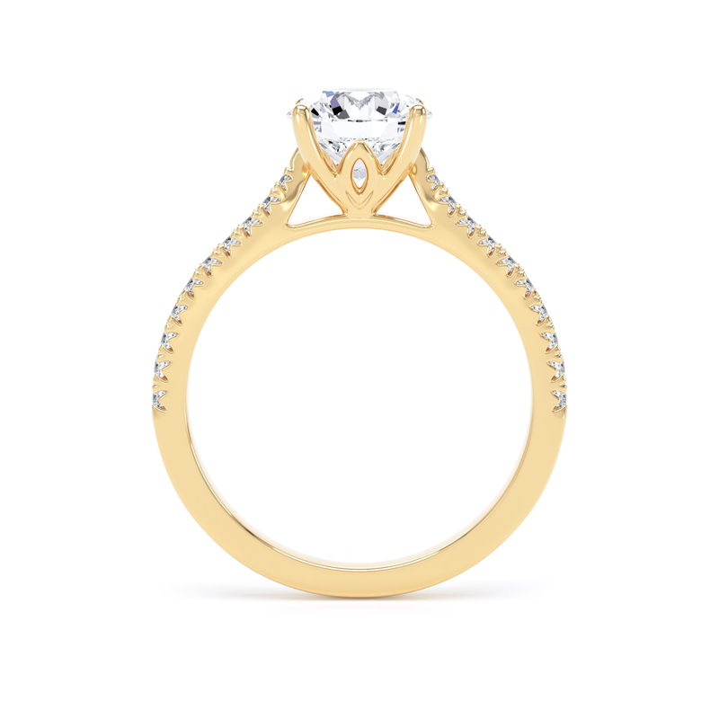 For an added layer of intricate sparkle, a shoulder set ring features a band gracefully adorned with smaller diamonds, leading the eye towards the magnificent centre stone. This elegant design choice enhances the overall brilliance of the ring, creating a continuous and captivating flow of light. Choose a shoulder set design for a timeless look that combines classic sophistication with an extra touch of glamou