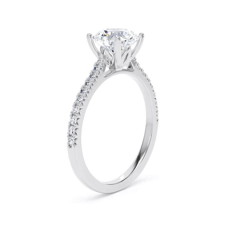 For an added layer of intricate sparkle, a shoulder set ring features a band gracefully adorned with smaller diamonds, leading the eye towards the magnificent centre stone. This elegant design choice enhances the overall brilliance of the ring, creating a continuous and captivating flow of light. Choose a shoulder set design for a timeless look that combines classic sophistication with an extra touch of glamou