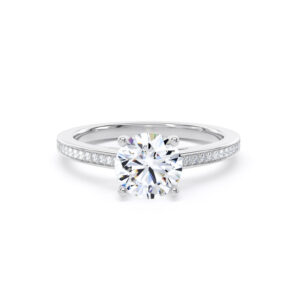 For an added layer of intricate sparkle, a shoulder set ring features a band gracefully adorned with smaller diamonds, leading the eye towards the magnificent centre stone. This elegant design choice enhances the overall brilliance of the ring, creating a continuous and captivating flow of light. Choose a shoulder set design for a timeless look that combines classic sophistication with an extra touch of glamou