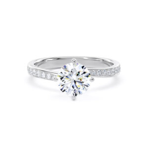For an added layer of intricate sparkle, a shoulder set ring features a band gracefully adorned with smaller diamonds, leading the eye towards the magnificent centre stone. This elegant design choice enhances the overall brilliance of the ring, creating a continuous and captivating flow of light. Choose a shoulder set design for a timeless look that combines classic sophistication with an extra touch of glamou