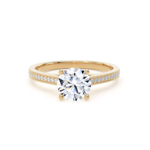 For an added layer of intricate sparkle, a shoulder set ring features a band gracefully adorned with smaller diamonds, leading the eye towards the magnificent centre stone. This elegant design choice enhances the overall brilliance of the ring, creating a continuous and captivating flow of light. Choose a shoulder set design for a timeless look that combines classic sophistication with an extra touch of glamou