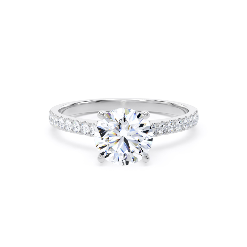For an added layer of intricate sparkle, a shoulder set ring features a band gracefully adorned with smaller diamonds, leading the eye towards the magnificent centre stone. This elegant design choice enhances the overall brilliance of the ring, creating a continuous and captivating flow of light. Choose a shoulder set design for a timeless look that combines classic sophistication with an extra touch of glamou