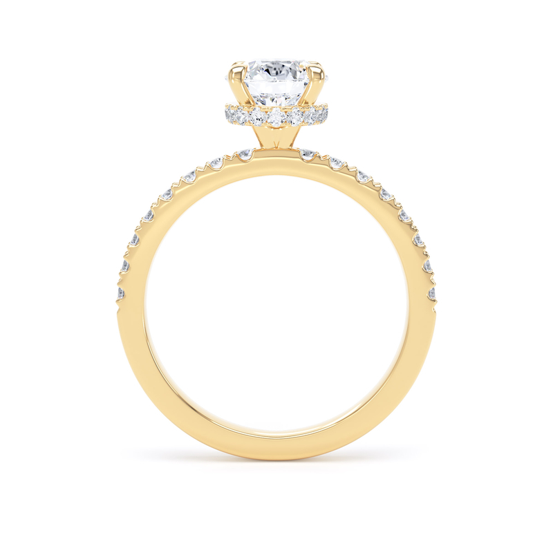 For an added layer of intricate sparkle, a shoulder set ring features a band gracefully adorned with smaller diamonds, leading the eye towards the magnificent centre stone. This elegant design choice enhances the overall brilliance of the ring, creating a continuous and captivating flow of light. Choose a shoulder set design for a timeless look that combines classic sophistication with an extra touch of glamou