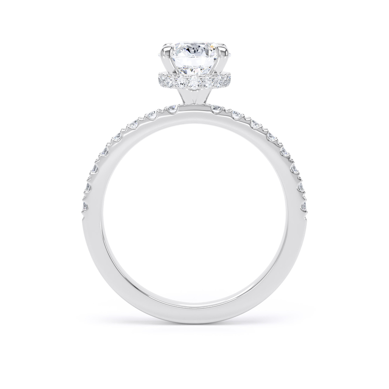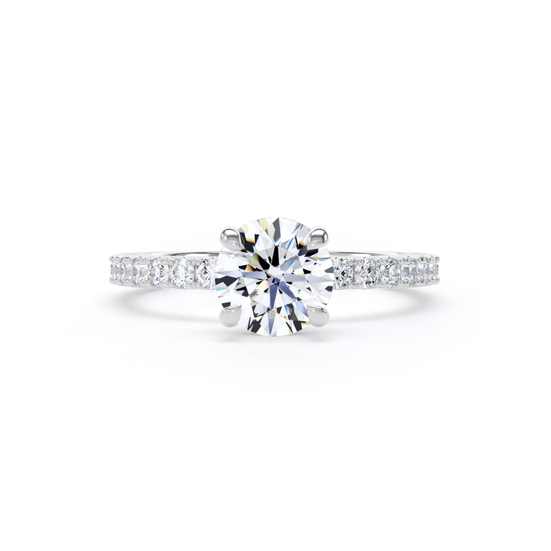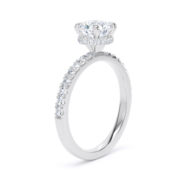 For an added layer of intricate sparkle, a shoulder set ring features a band gracefully adorned with smaller diamonds, leading the eye towards the magnificent centre stone. This elegant design choice enhances the overall brilliance of the ring, creating a continuous and captivating flow of light. Choose a shoulder set design for a timeless look that combines classic sophistication with an extra touch of glamou