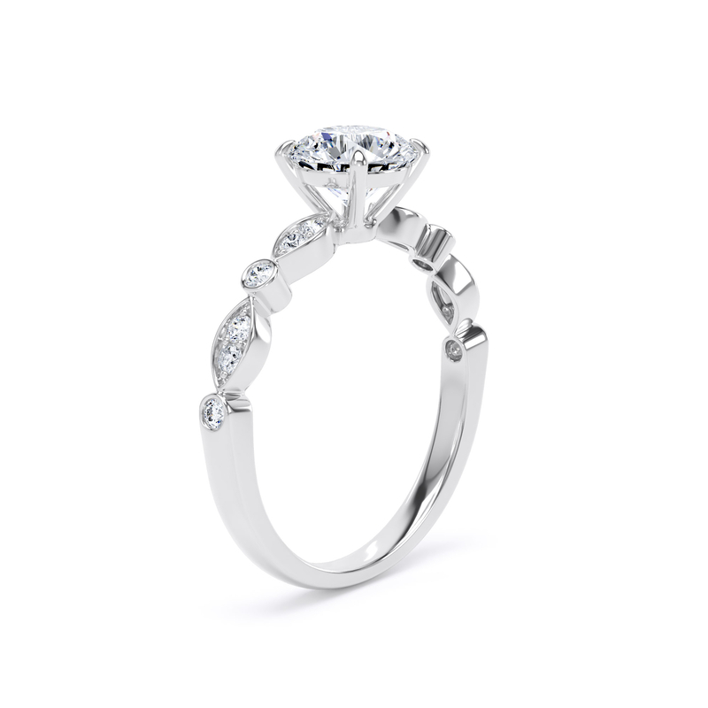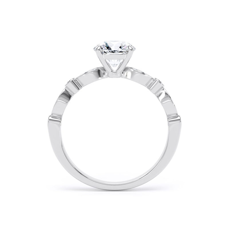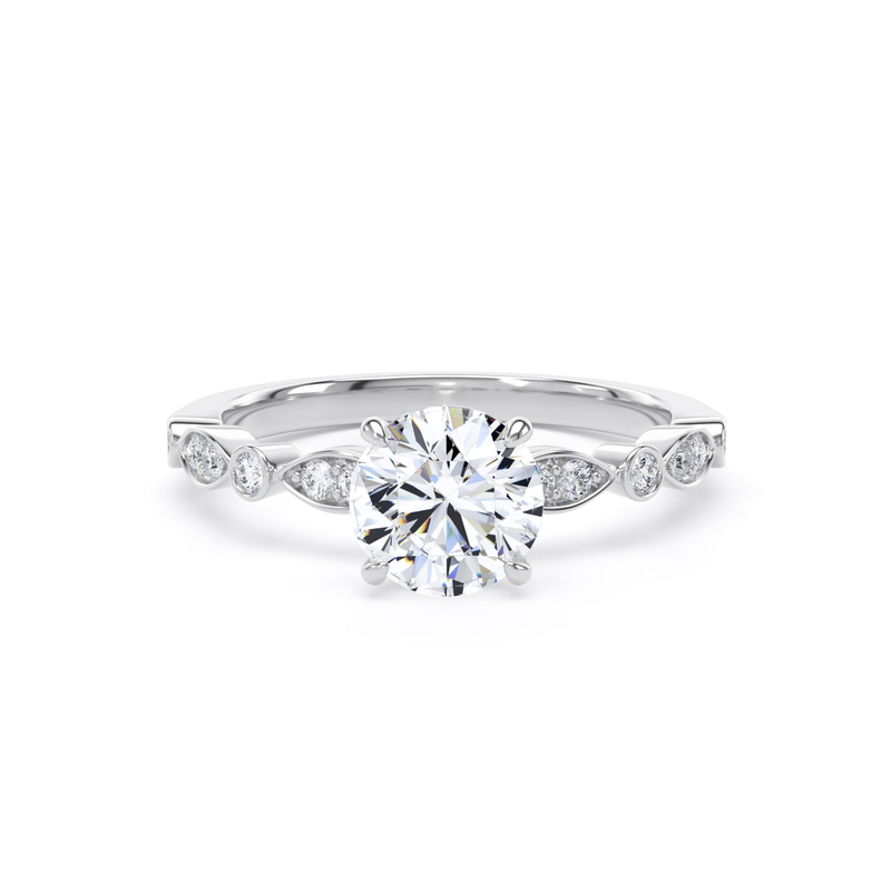 For an added layer of intricate sparkle, a shoulder set ring features a band gracefully adorned with smaller diamonds, leading the eye towards the magnificent centre stone. This elegant design choice enhances the overall brilliance of the ring, creating a continuous and captivating flow of light. Choose a shoulder set design for a timeless look that combines classic sophistication with an extra touch of glamou